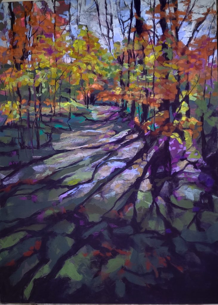I love the interplay of color, light, shape and form as I journey through each piece I create. Pastels as a medium further that interplay, simultaneously providing the joy of both painting and drawing. The array of pastel colors before me as I begin my artwork ignites and inspires my creative flow. It is a journey in which the sense of mark making and accidental discovery propels my art into becoming more than I envisioned at the start. In each piece, my goal is to be part of an unfolding; revealing to the viewer the beauty in objects arranged together, the human form in pose, the interactions of the natural landscape, the beauty of our world.